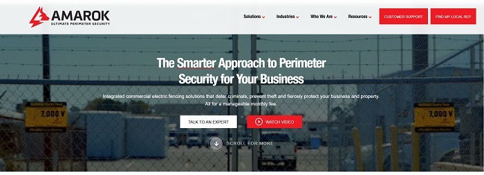 AMAROK offers scalable, modular perimeter fences and video surveillance cameras with a broad range of add-ons, including gate access control, alarm systems and LED lights for dark and at-risk areas, and building intrusion systems. It features both permanent and portable equipment to suit the security needs of large mixed commercial-industrial complexes, temporary construction sites, material staging areas, completed structures awaiting handover and asset storage yards.