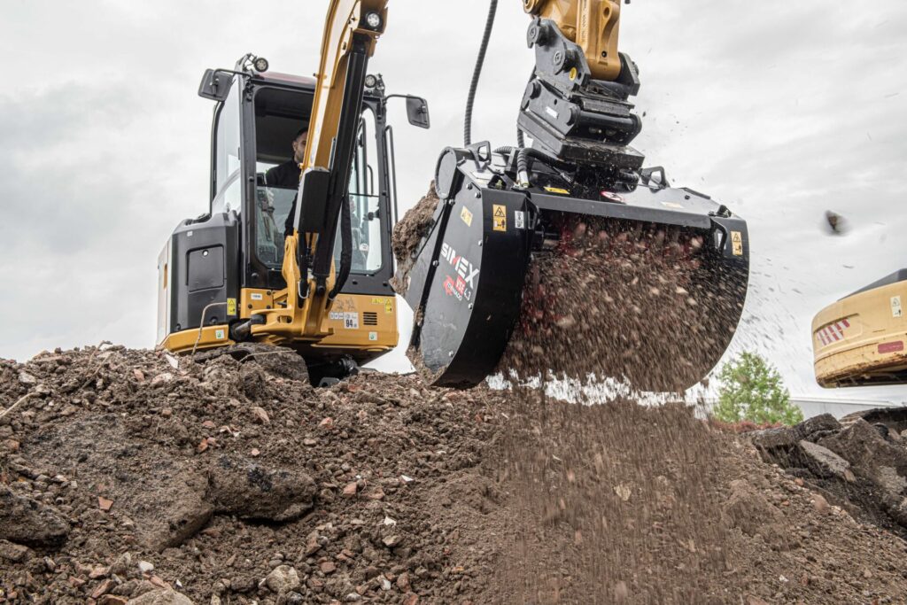 Simex will also present the VSE Tornado screening buckets, a new range aimed at mini and midi excavators from 1.5 to 10 tonnes. The design targets material separation directly on site, including in wet or damp conditions, using a multi-shaft configuration with star-shaped screening elements to improve material movement through the bucket.