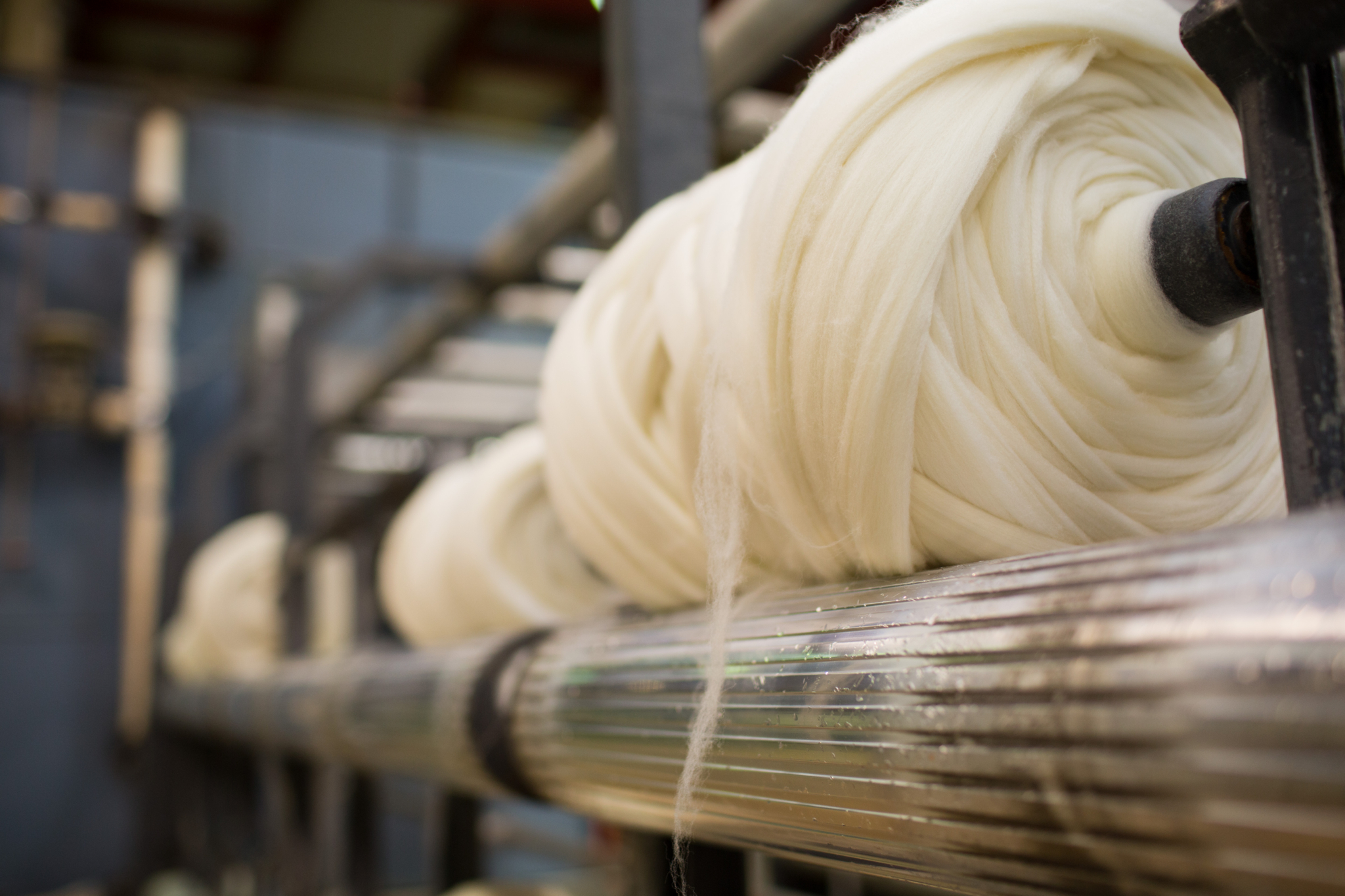 Every spring the ranchers give the sheep a haircut and the wool is evaluated for quality and sorted. The first stage of preparation is washing and combing it to remove dirt and the natural grease. The fibers are combed parallel so that they are ready to go into the spinning mill.