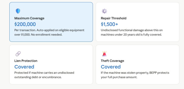 Key Takeaway: For a $25,000 mini-excavator or $30,000 skid steer, BEPP is the equivalent of a warranty backstop that private sellers simply cannot offer.