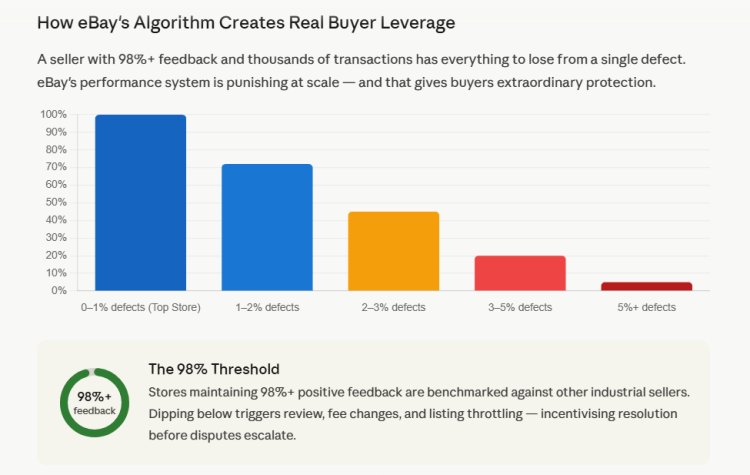 One of the most underappreciated aspects of buying from a high-feedback eBay Store is the structural leverage it gives you as a buyer. eBay's seller performance system is designed in a way that is punishing for established, high-volume sellers who deliver bad outcomes to buyers.